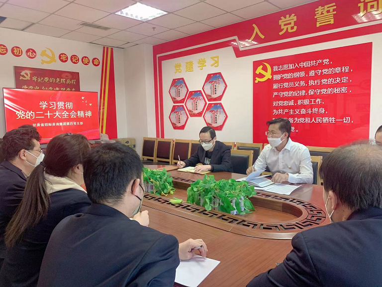 篤行不怠跟黨走,踔厲奮發(fā)新征程。連日來,甘肅省招標(biāo)咨詢集團(tuán)有限責(zé)任公司各黨支部通過多種形式深入學(xué)習(xí)宣傳貫徹黨的二十大精神,在奮進(jìn)新時代、建功新征程中更好展現(xiàn)招標(biāo)咨詢集團(tuán)新?lián)?dāng)、新作為、新貢獻(xiàn)。