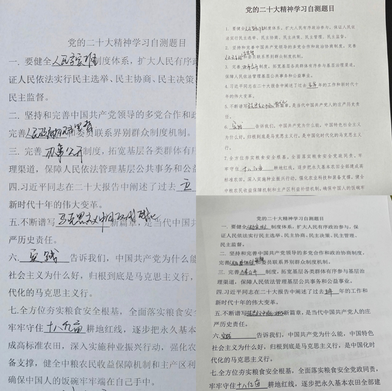 開展答卷測試,檢驗(yàn)學(xué)習(xí)成效。招標(biāo)咨詢集團(tuán)第三黨支部所屬咨詢中心采取線上視頻會議的方式組織全體黨員居家學(xué)習(xí)黨的二十大報告原文,通過學(xué)原文、悟原理、反復(fù)學(xué)、時常悟,深刻領(lǐng)會和準(zhǔn)確把握報告的精神實(shí)質(zhì)、豐富內(nèi)涵和核心要義。同時,對黨的二十大報告相關(guān)知識開展應(yīng)知應(yīng)會測試,通過答卷的方式檢驗(yàn)黨員干部對黨的二十大精神的理解和把握,達(dá)到以考促學(xué)、以學(xué)促用、學(xué)用結(jié)合、知行合一的目的。