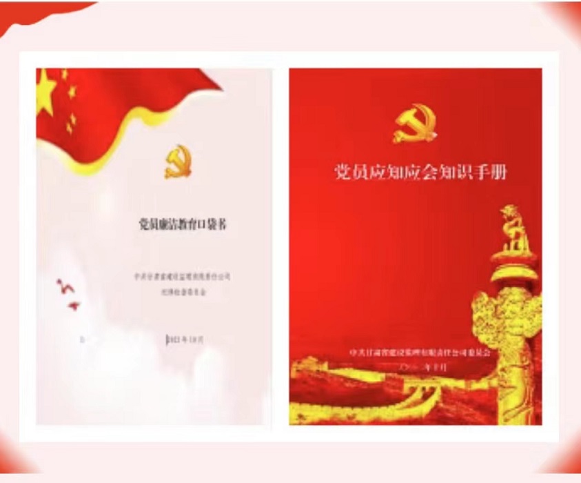 活動中,建設(shè)監(jiān)理公司黨委還為黨員精心制作了《黨員廉潔教育口袋書》及《黨員應知應會知識手冊》,篩選出黨紀黨規(guī)、黨建常識、名言警句、家風家教、廉潔從業(yè)等各方面的常用知識,方便黨員學習使用。此次系列黨建活動不但拓展了黨員干部職工的學習途徑,豐富了黨建宣傳形式,更有助于進一步提升黨員的政治素質(zhì)和對黨建工作的認知,凝聚廉政廉潔、風清氣正的思想共識。