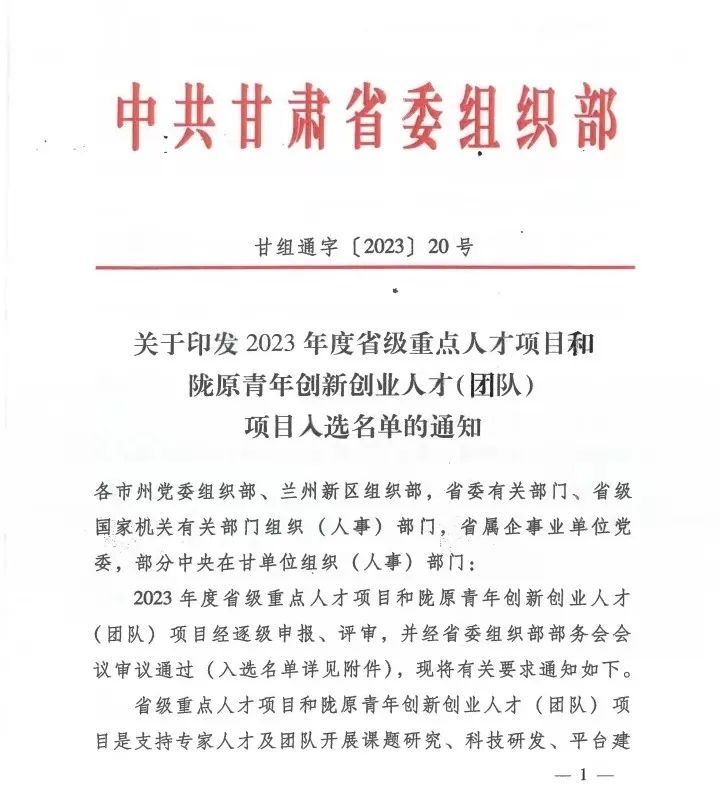 甘肅工程咨詢集團(tuán)1項(xiàng)人才(個(gè)人)項(xiàng)目入選2023年度省級(jí)重點(diǎn)人才項(xiàng)目和隴原青年創(chuàng)新創(chuàng)業(yè)人才(團(tuán)隊(duì))項(xiàng)目