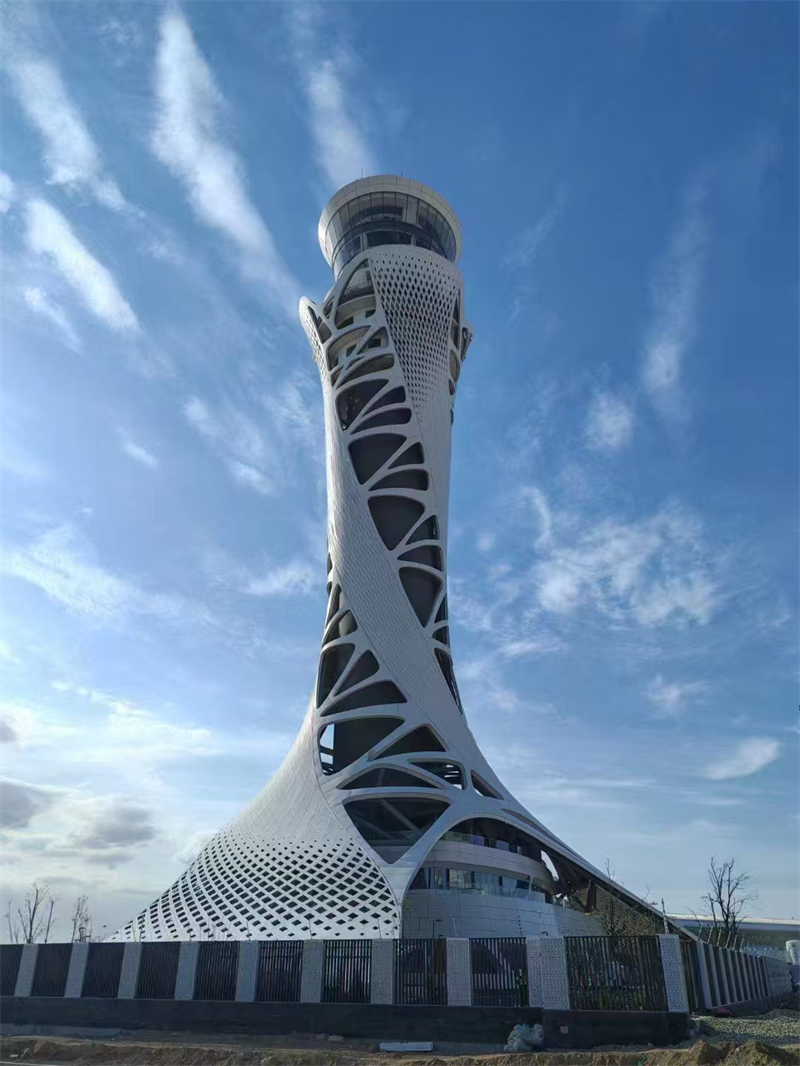 項(xiàng)目總投資13.43億元,塔臺(tái)建筑高度99.9米,是全國(guó)空管分局有史以來建設(shè)規(guī)模最大、投資最大的空管建設(shè)項(xiàng)目,創(chuàng)造了多項(xiàng)分局站建設(shè)第一。項(xiàng)目總體以“敦煌飛天”與“絲綢之路”為靈感,塔臺(tái)采用鋼結(jié)構(gòu)斜交網(wǎng)格外框+鋼筋混凝土核心筒設(shè)計(jì),空管工作區(qū)采用鋼筋混凝土框架+首層BRB支撐+基礎(chǔ)橡膠隔震支座設(shè)計(jì),鋼結(jié)構(gòu)總量達(dá)3561噸。