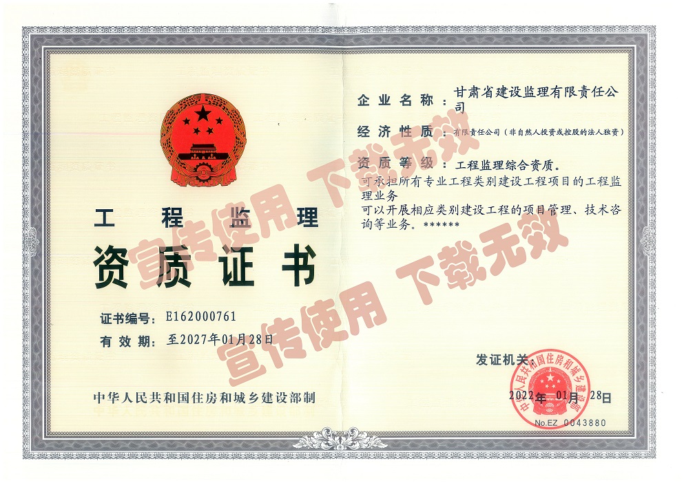 喜報(bào)!甘肅省建設(shè)監(jiān)理有限責(zé)任公司取得工程監(jiān)理綜合資質(zhì)